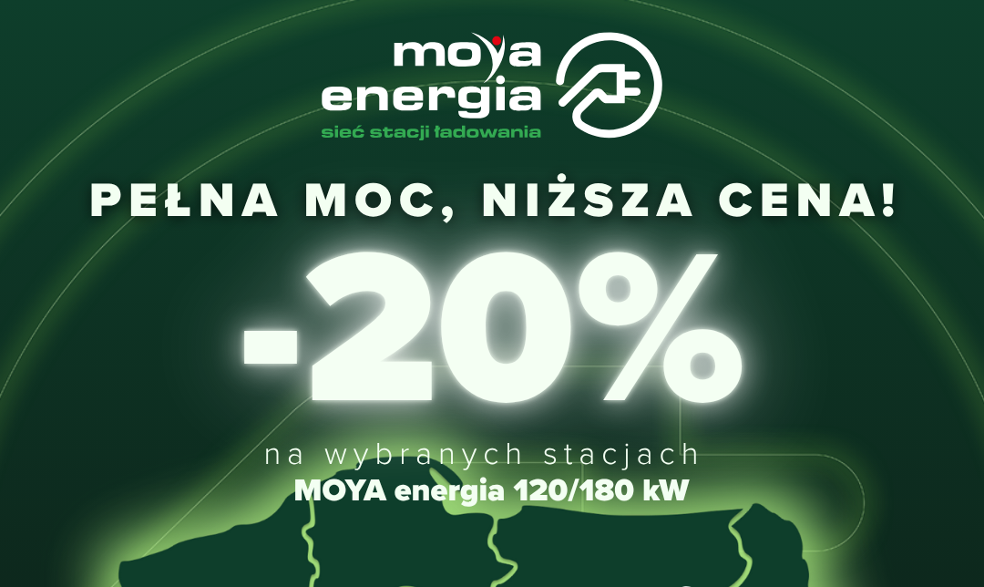Promocja -20% to sposób, by zachęcić użytkowników do odwiedzenia nowych stacji i przekonania się, że z MOYA energia elektromobilność naprawdę się opłaca.