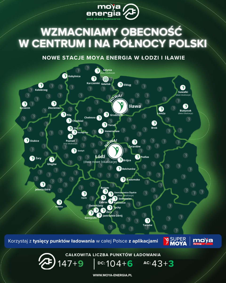 Otwarcie trzech kolejnych stacji to następny krok w dynamicznym rozwoju sieci MOYA energia. Wzmocnienie obecności w Łodzi oraz ponowne wejście do województwa warmińsko-mazurskiego pokazują, że sieć rozwija się równolegle w dużych miastach i mniejszych ośrodkach, tam gdzie infrastruktura ładowania jest realnie potrzebna.