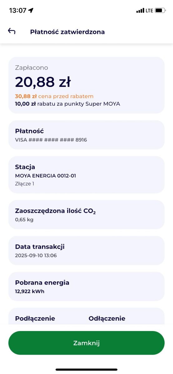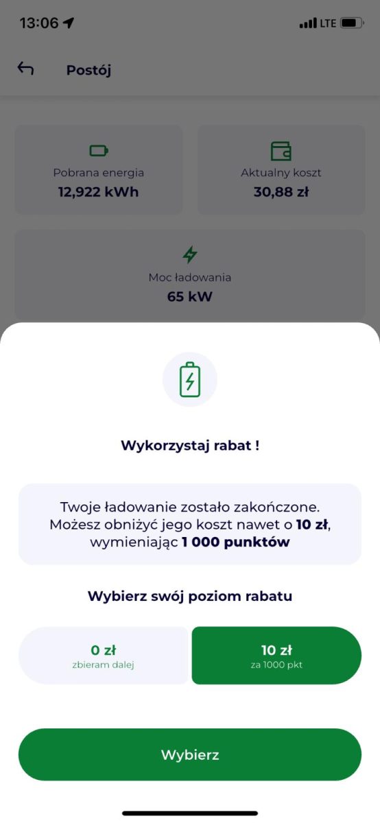 Decyzję o skorzystaniu z punktów podejmuje się dopiero na końcu procesu ładowania, po odłączeniu kabla ładowarki od pojazdu.
