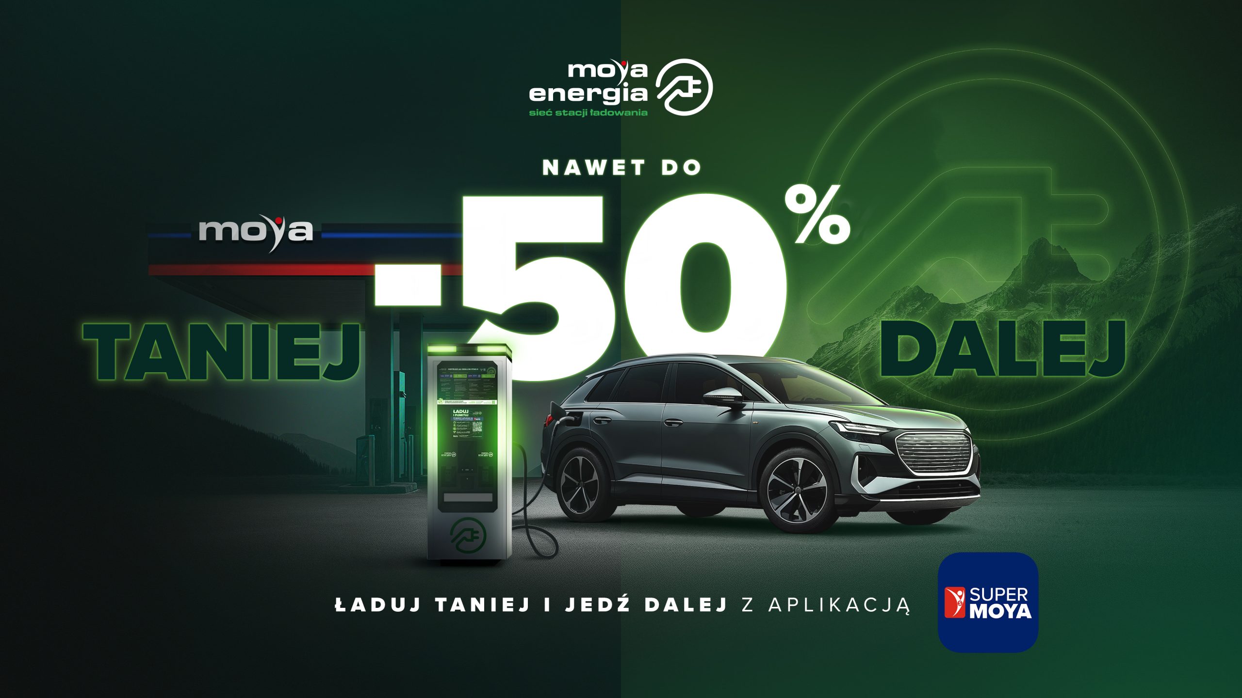 Możliwość rabatowania dla użytkowników aplikacji Super MOYA to nasze autorskie, innowacyjne i pierwsze w Polsce rozwiązanie dedykowane kierowcom samochodów elektrycznych!